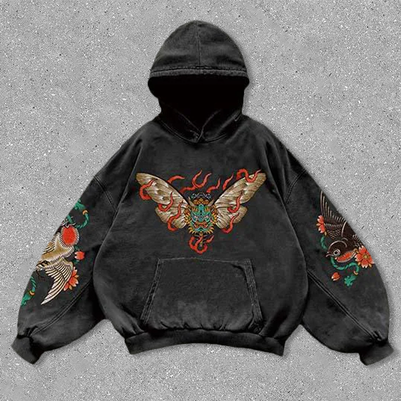 Bird and flower print hoodie