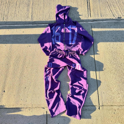 Fashion casual digital print zipper sweatshirt suit
