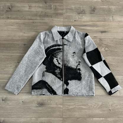 Figure Letters Print Zipped Jacket