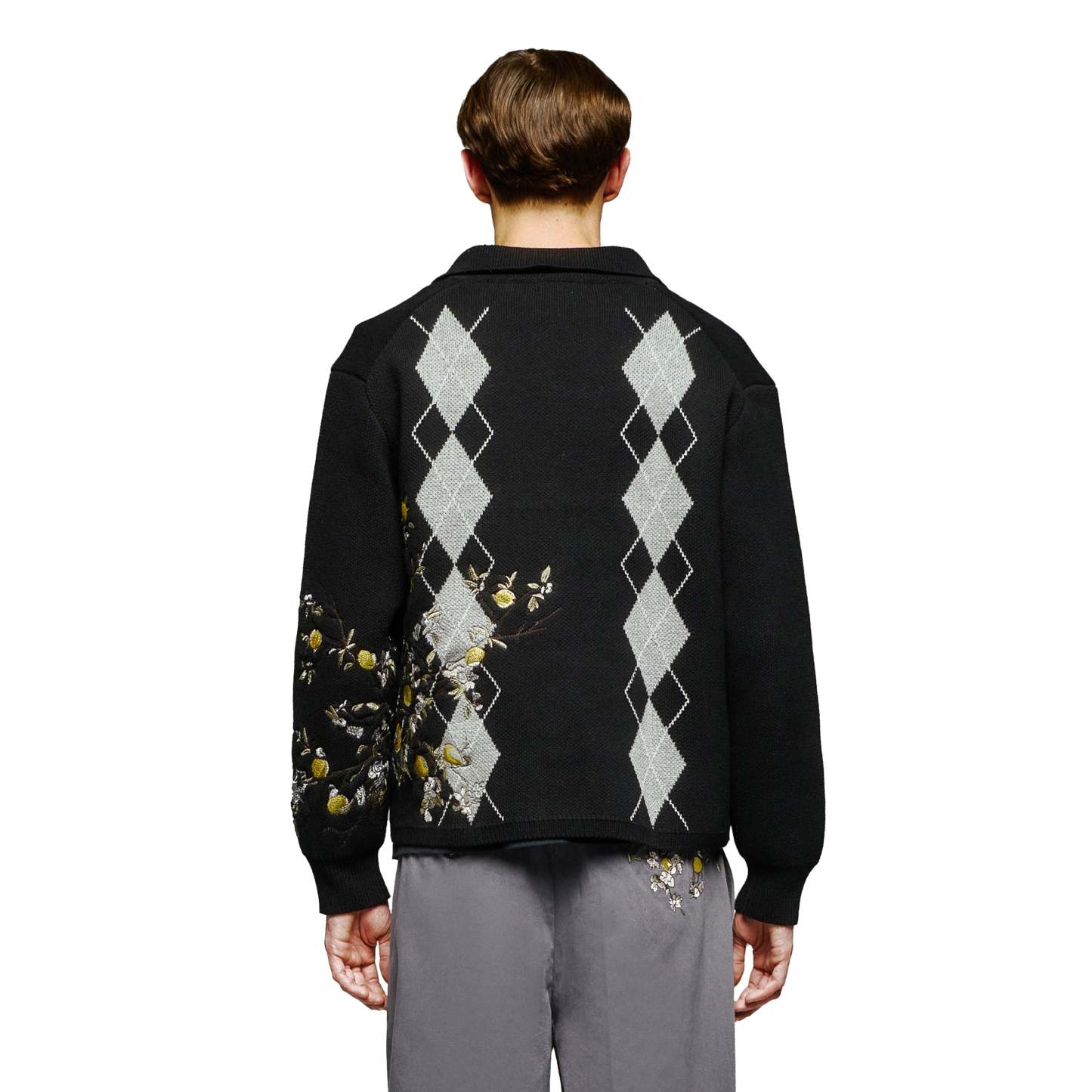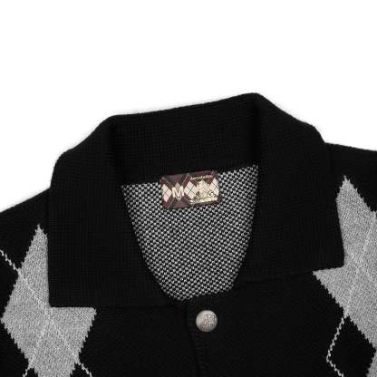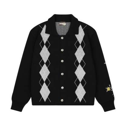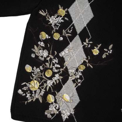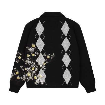 100% cotton / heavy weight knit / plaid pattern pique jacquard on front and back / embroidery on back and sleeve / custom buttons / fits true to size
