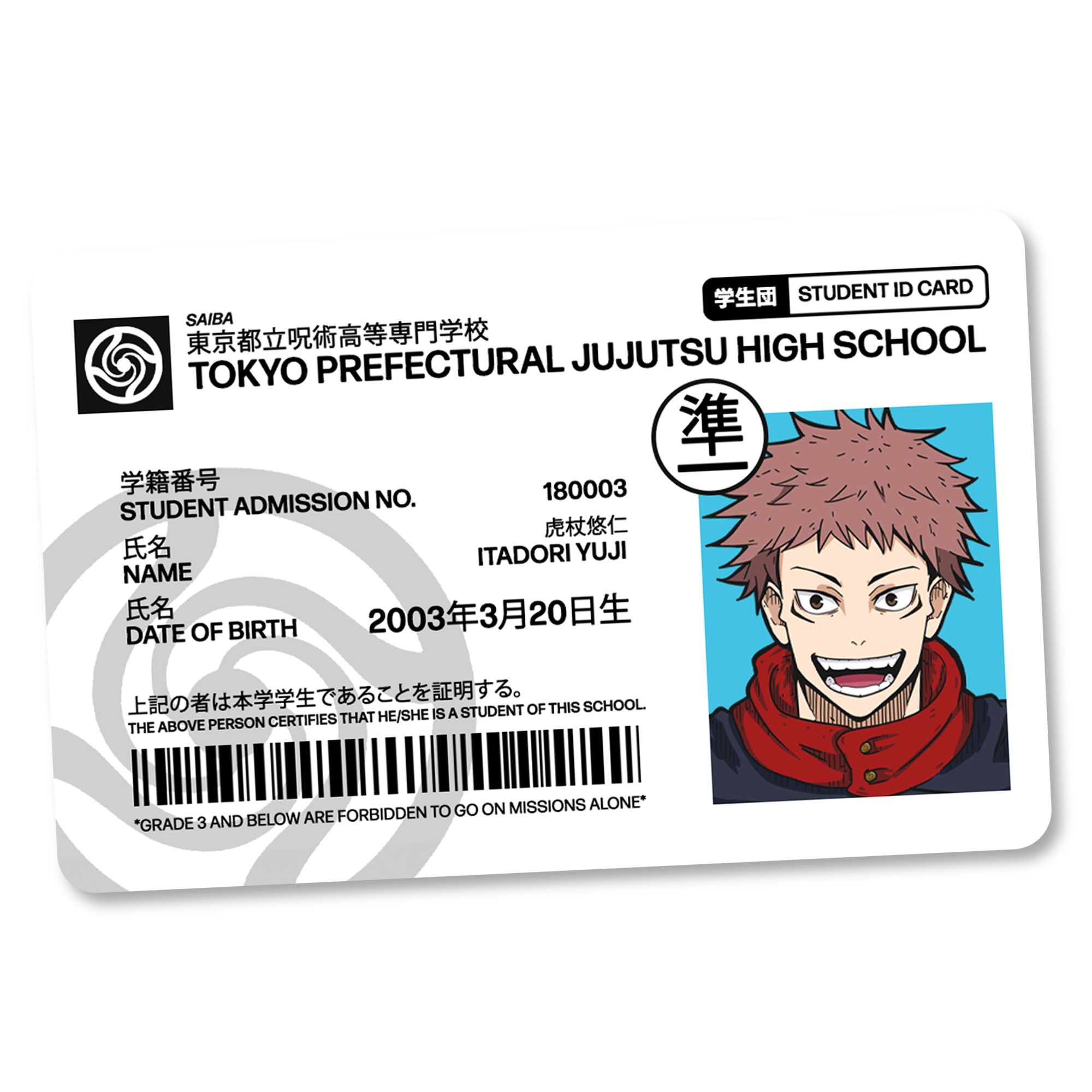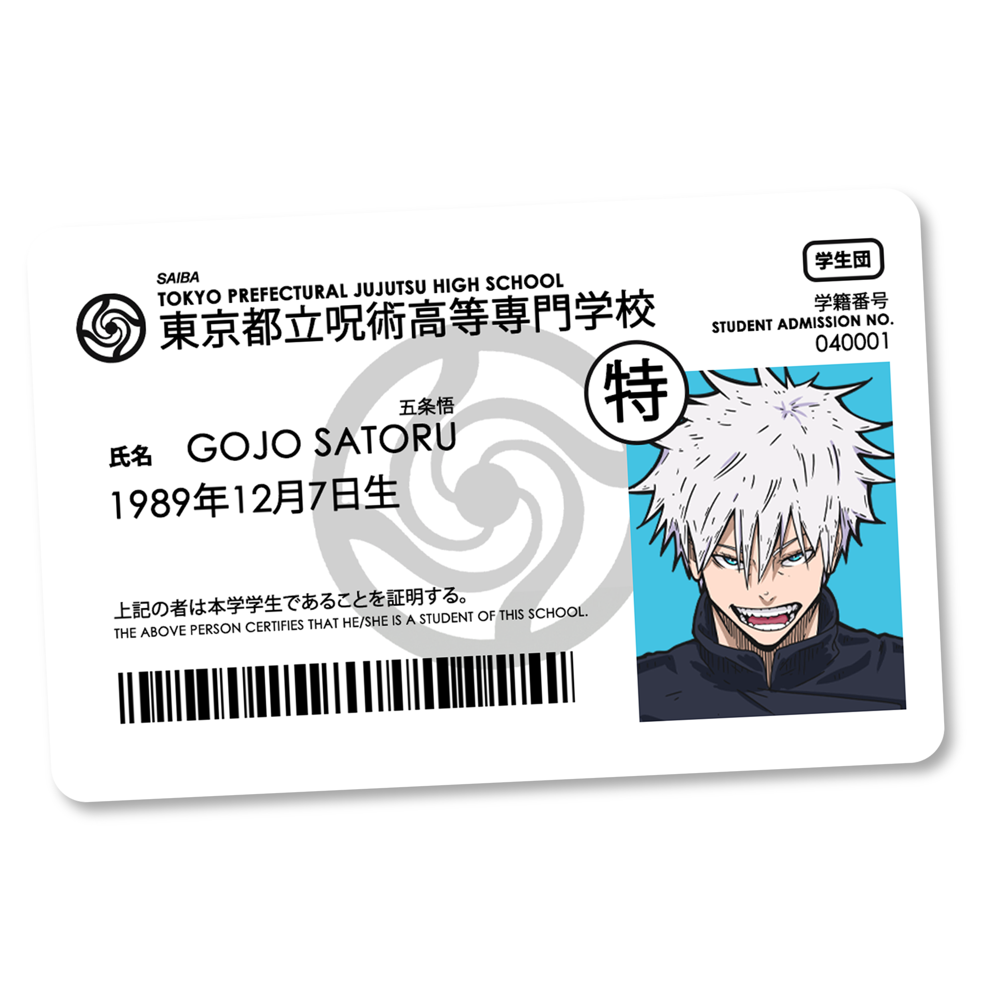 Jujutsu Metropolitan Curse Technical College Identification Card