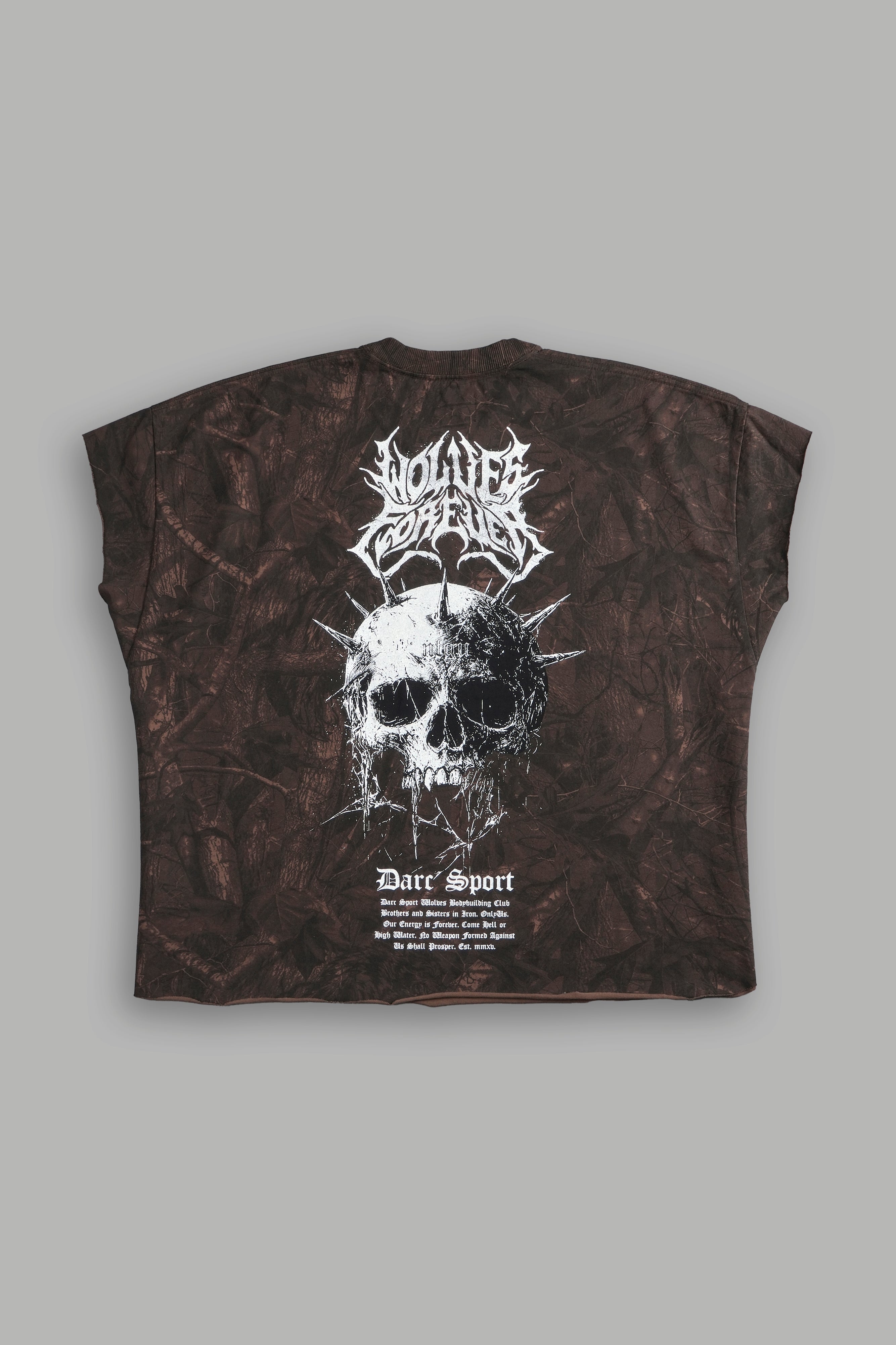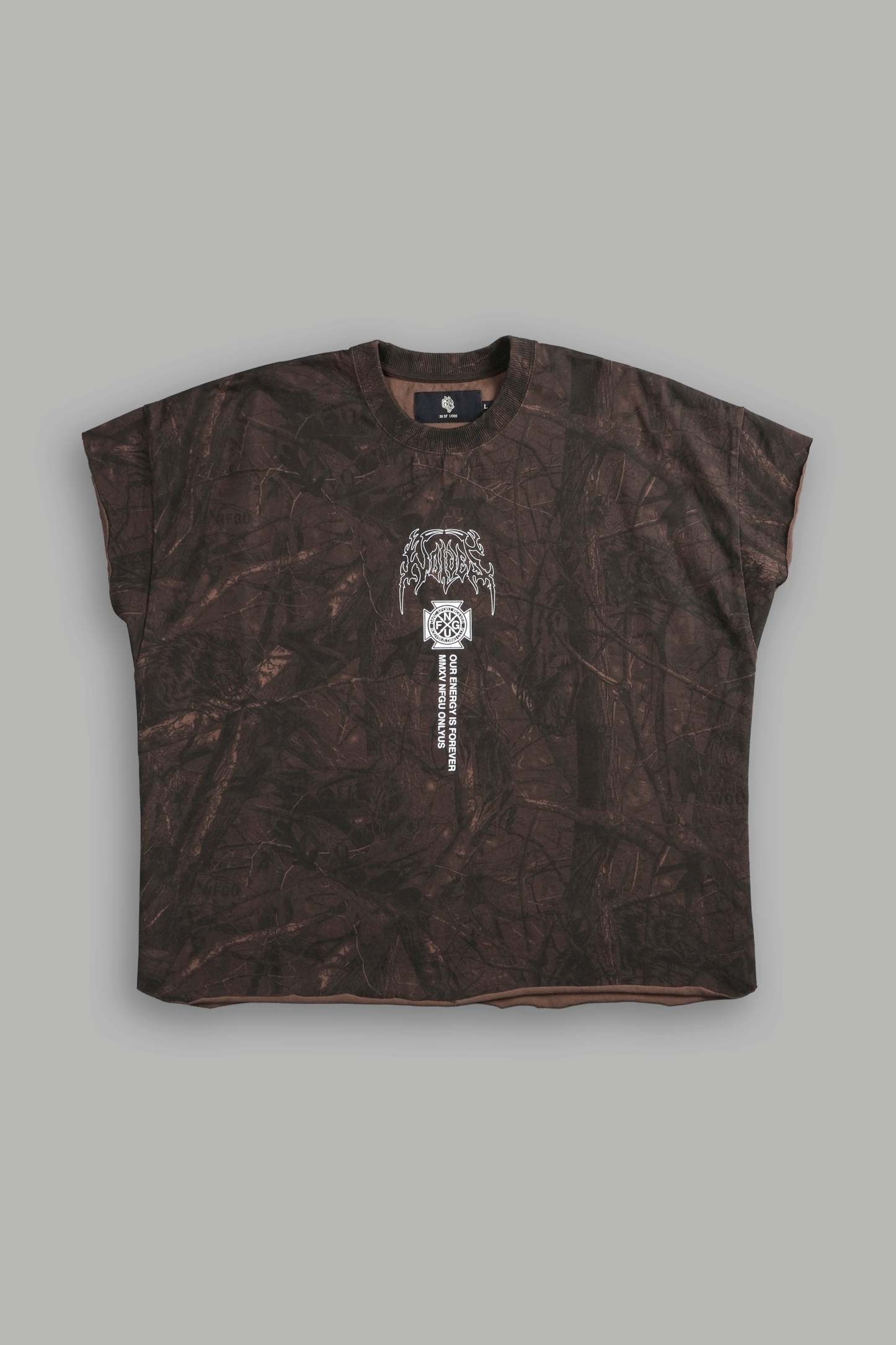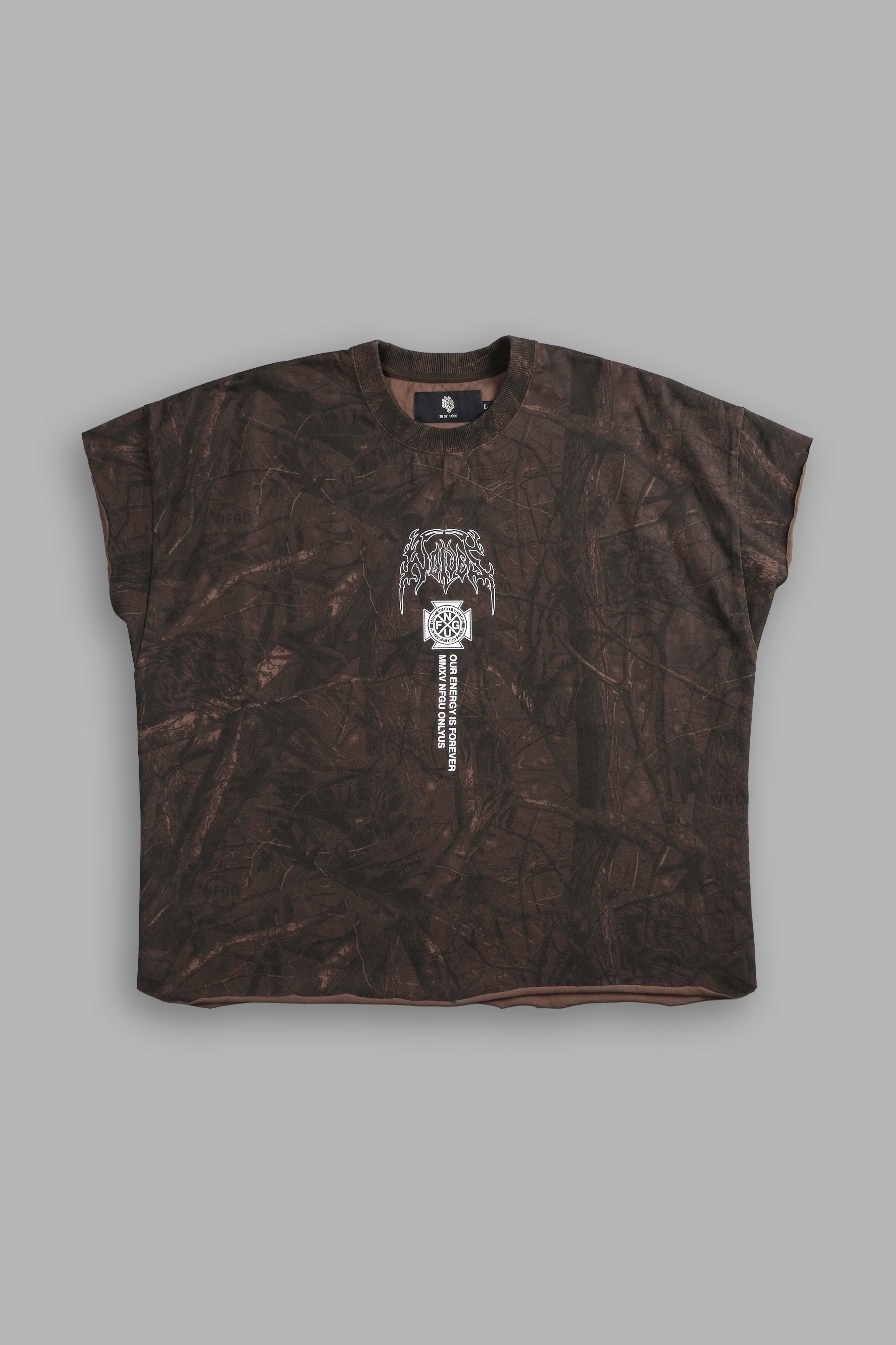 Mourning Star "Grunge" Cut Off Tee in Brown Driftwood Forest Camo