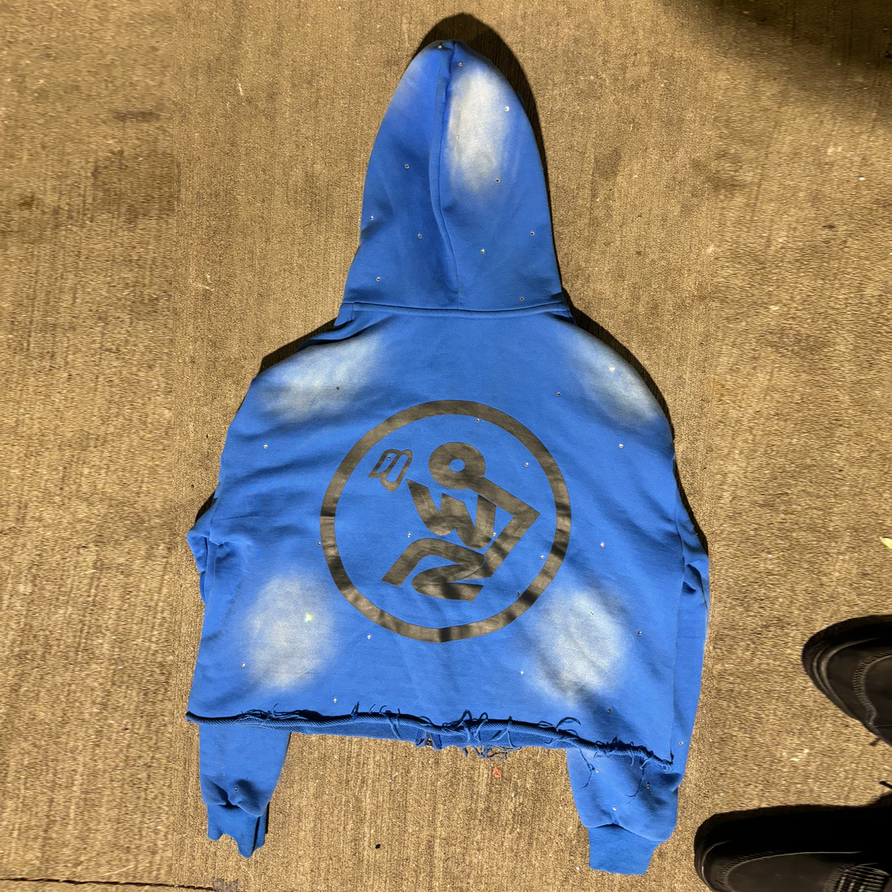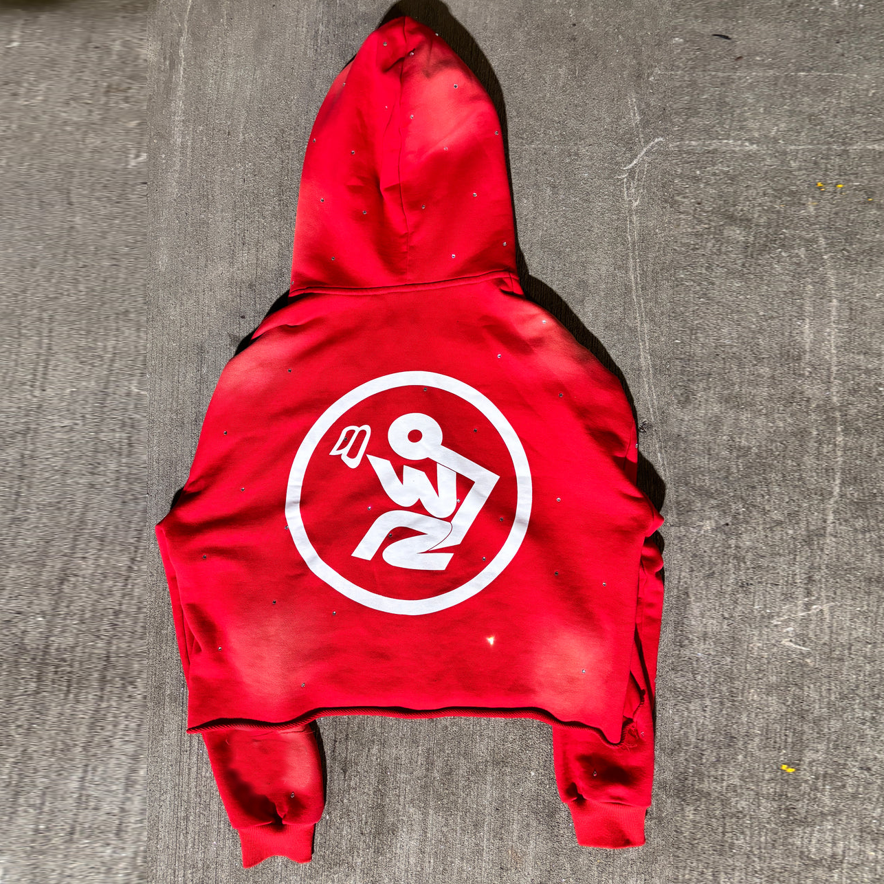 Multi-pocket rhinestone cropped zip-up hoodie